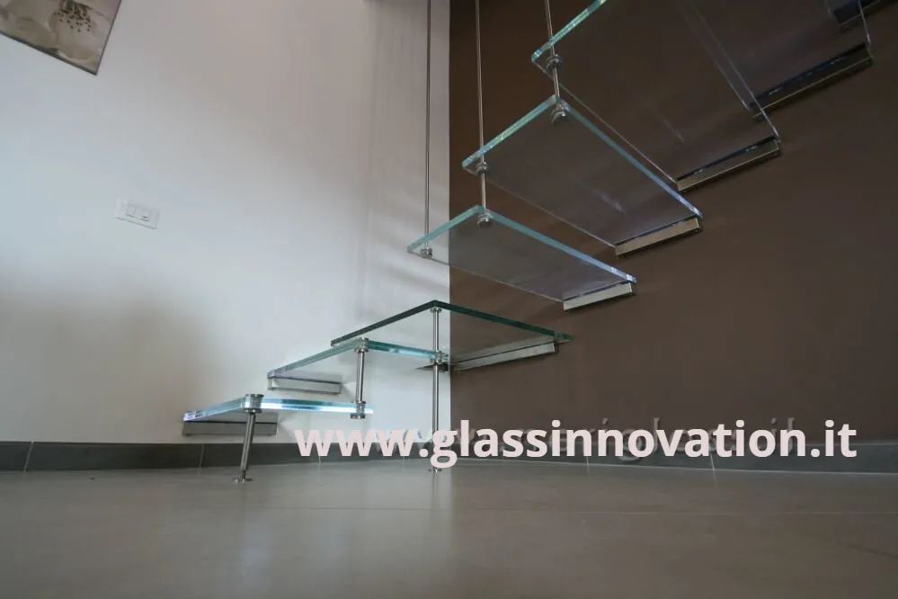 Le scale in vetro sanno donare a ogni ambiente, sia esso abitativo o commerciale, un fascino speciale, un’eleganza senza tempo. L’impatto visivo è unico, soprattutto quando le scale vengono personalizzate e decorate in base alle esigenze estetiche del cliente. L’azienda Glass Innovation ha sviluppato diverse tecniche decorative e, pertanto, è in grado di realizzate scale in vetro di pregiata qualità e dalle decorazioni originali e meravigliose. Queste strutture vengono impreziosite e abbinate ad altri materiali, quali il legno, l’alluminio e l’acciaio inox. Scegli la qualità dei materiali italiani e valorizza i tuoi ambienti con meravigliose scale in vetro.