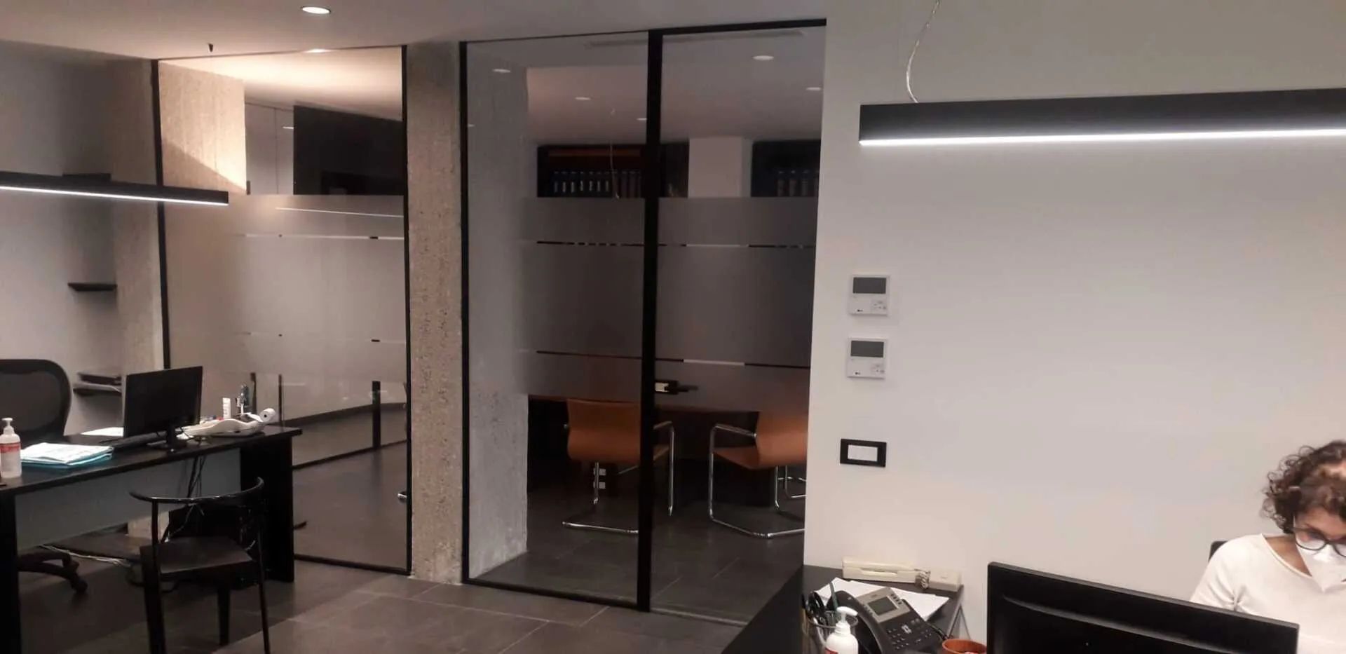 Glass Innovation propone al cliente la qualità e l’eleganza del vetro declinate in diverse tipologie di strutture. Se desideri separare gli ambienti di casa, dell’ufficio, del negozio o dell’attività commerciale, scegli le pareti divisorie in vetro realizzate con cura e passione dagli artigiani. Le pareti divisorie in vetro sono divenute, negli ultimi tempi, un elemento di arredo molto utilizzato dagli interior designer, grazie alle straordinarie caratteristiche del vetro. Esso, infatti, sa adattarsi a ogni contesto, rendendolo elegante e raffinato e donando un senso di ampiezza che fa sembrare l’ambiente più grande. Questa tipologia di pannelli separatori viene spesso utilizzata in uffici, luoghi di lavoro e banche.